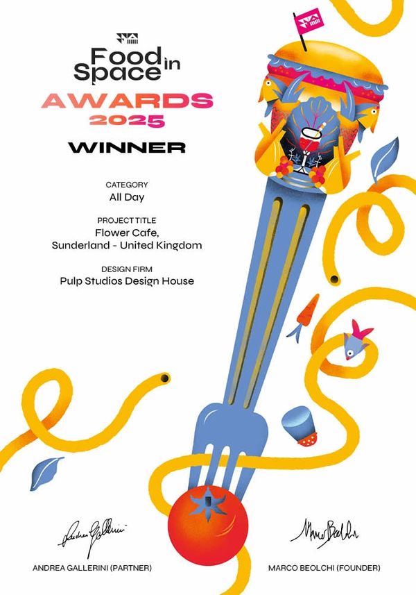 Food in Space International Design Award 2025 for the stunning Flower Cafe in Sunderland, UK.